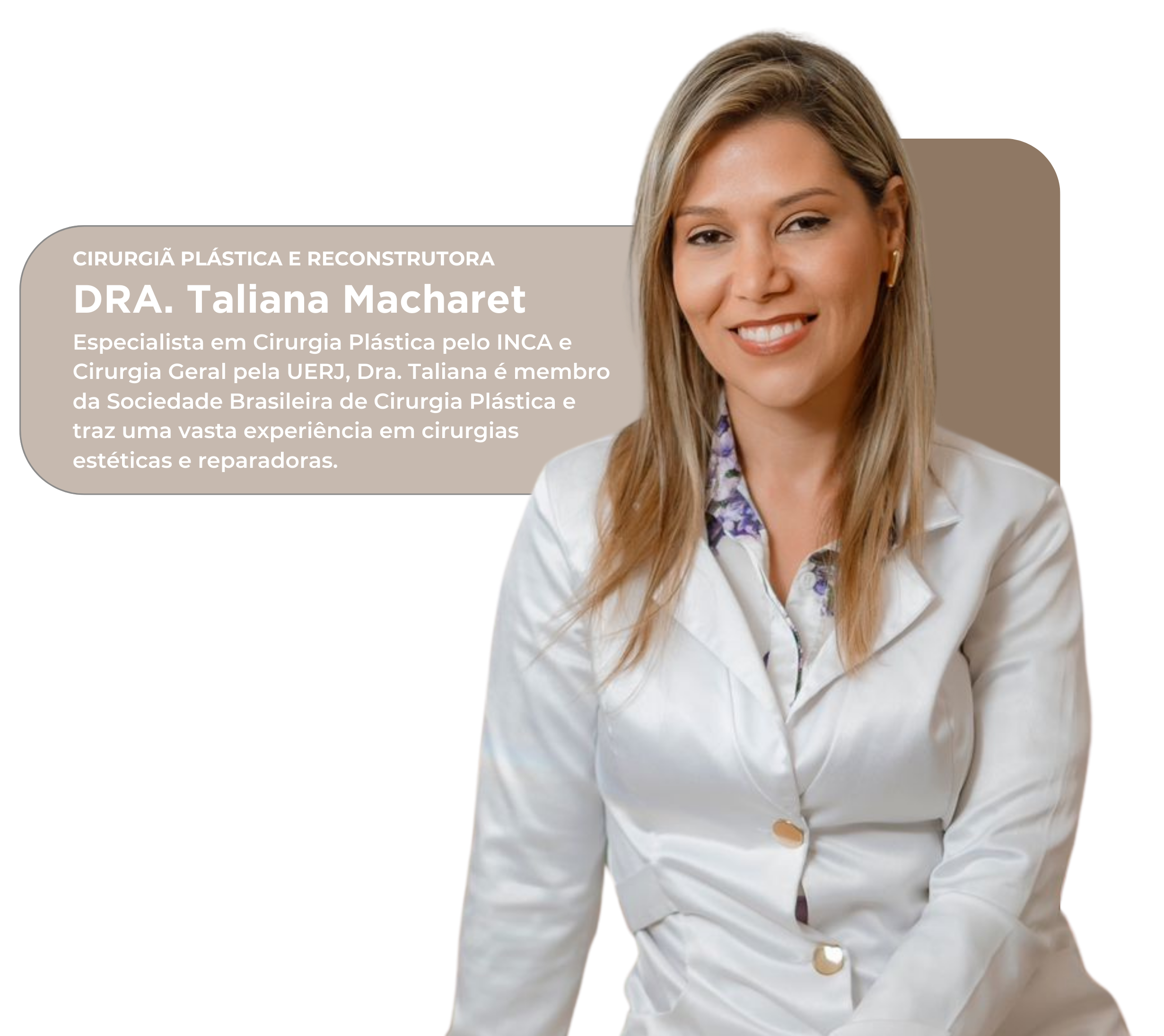 Publicado em Christiane Garrao2025-10-02Trustindex verifica se a fonte original da avaliação é Google. Me chamo Chris e venho aqui para agradecer a Doutora Taliana pelo excelente trabalho, por toda a atenção, paciência e carinho com a minha filha que fez uma otoplastia bilateral. A Doutora e toda a sua equipe vão além do suporte técnico sobe a cirurgia e todo o procedimento, elas seguram na mão do paciente e da família dando um suporte emocional incrível. Ficamos muito felizes com o resultado! Muito obrigada!🤍🙏😊🌷Publicado em Izabella oliveira2025-05-12Trustindex verifica se a fonte original da avaliação é Google. Dr. Taliana é maravilhosa super atenciosa no atendimento e no pós operatório, eu não poderia ter escolhido outra, eu estou super feliz com meu resultado de mamoplastia 💗💖Publicado em Juliana Carolino2025-02-10Trustindex verifica se a fonte original da avaliação é Google. Ótima profissionalPublicado em marly2024-10-07Trustindex verifica se a fonte original da avaliação é Google. Me chamo Marly, e tô entrando aqui para deixar o meu muito obrigada para a dr Taliana Macharet. Ha uns meses atrás, fiz uma pequena cirurgia com ela, retirei alguns pólipos, e dentre esses, retirei também dois sinais de nascença, que por sinal um deles tava muito feio, daí ela resolveu envia lo para biópsia, que graças a Deus, e a ela estou ótima! Muito obrigada dr Taliana Macharet, pela sua dedicação aos seus pacientes, os quais vc se dedica com muita educação, e atenção. Te desejo muito sucesso na em sua nova jornada. Um abraço para externar minha gratidão! Obrigada!Publicado em Iracema Souza2024-10-06Trustindex verifica se a fonte original da avaliação é Google. Pessoa maravilhosa e profissional excepcional. Super competente no que faz. Amei ser cuidada por ela. Só gratidão. Fiz quatro procedimentos e fiquei muito satisfeita. Super indico.Publicado em Jose de Souza Silva2024-10-04Trustindex verifica se a fonte original da avaliação é Google. Quero agradecer a Deus pela vida da Dra Taliana que me fez a retiradas de alguns lipomas através de cirurgias com muito profissionalismo.Publicado em David2024-10-03Trustindex verifica se a fonte original da avaliação é Google. Excelente!!Publicado em Diana Dias2024-09-19Trustindex verifica se a fonte original da avaliação é Google. Ótimo excelente profissionalPublicado em Josefina Cardoso2024-09-17Trustindex verifica se a fonte original da avaliação é Google. Bom dia, eu não fui atendida pela Dr Taliana e sim a minha tia Mailda que foi operada no hospital do câncer e do coração no bairro do Lagoinha - SG. Ela foi muito bem atendida e bem tratada por todos da equipe e a doutora foi muito atenciosa e ela adorou e elogiou muito a doutora é o que eu posso dizer, elogios também às atendentes que foram muito prestativas.